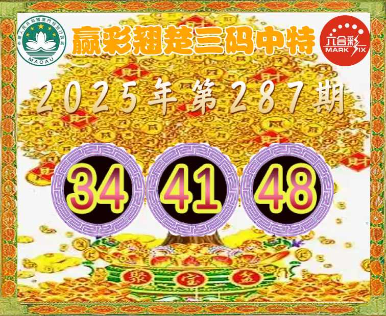 287期: 👈『赢彩翘楚』 👈三码中特👈【34.41.48】开:34准