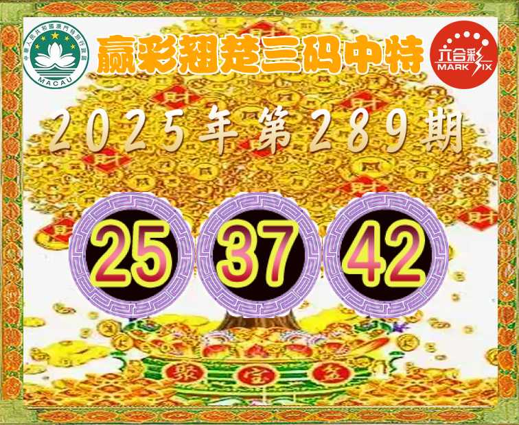 289期: 👈『赢彩翘楚』 👈三码中特👈【25.37.42】开:42准