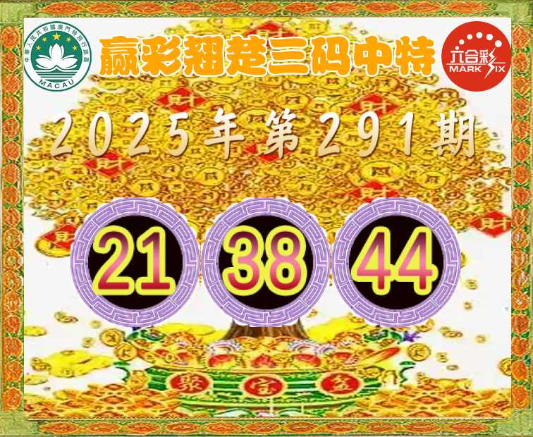 291期: 👈『赢彩翘楚』 👈三码中特👈【21.38.44】开:44准