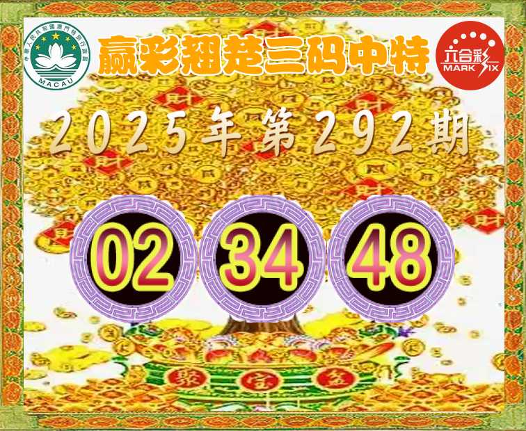 292期: 👈『赢彩翘楚』 👈三码中特👈【02.34.48】开:02准