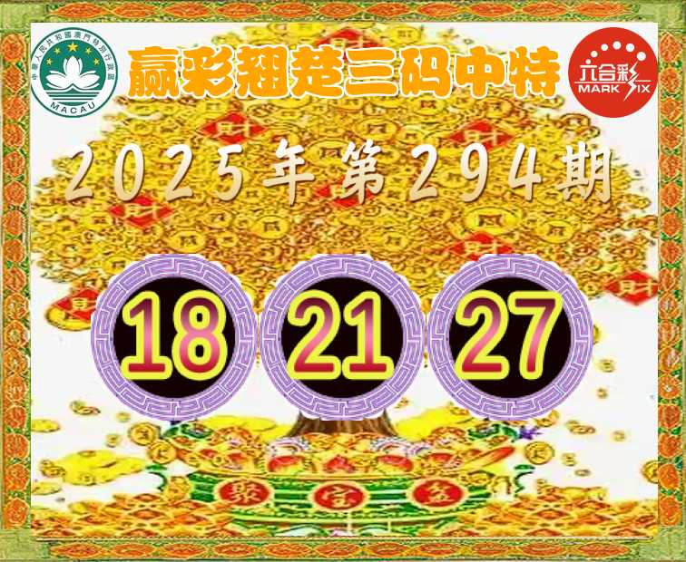 294期: 👈『赢彩翘楚』 👈三码中特👈【18.21.27】开:18准