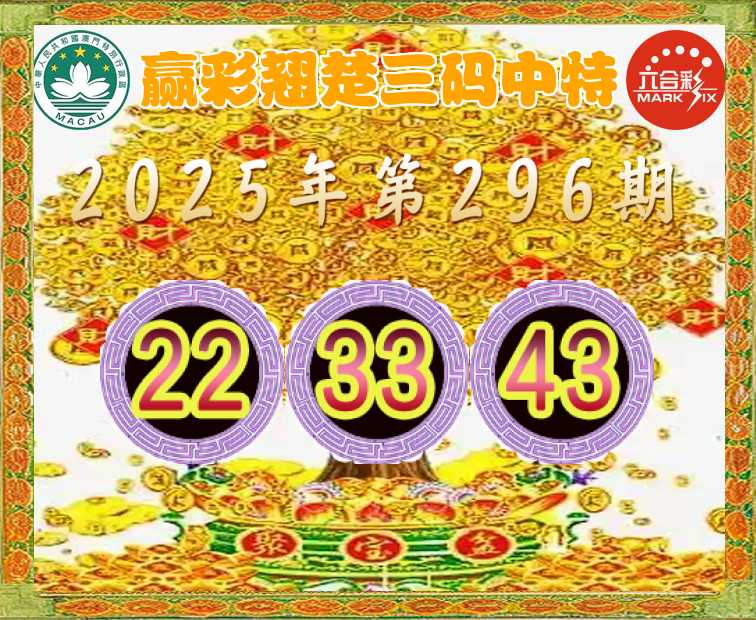 296期: 👈『赢彩翘楚』 👈三码中特👈【22.33.43】开:22准