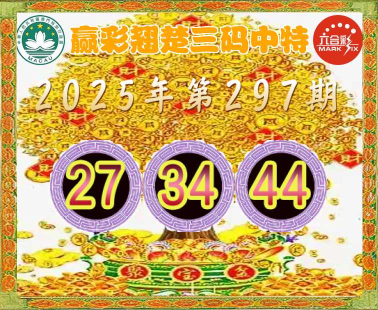 297期: 👈『赢彩翘楚』 👈三码中特👈【27.34.44】开:44准