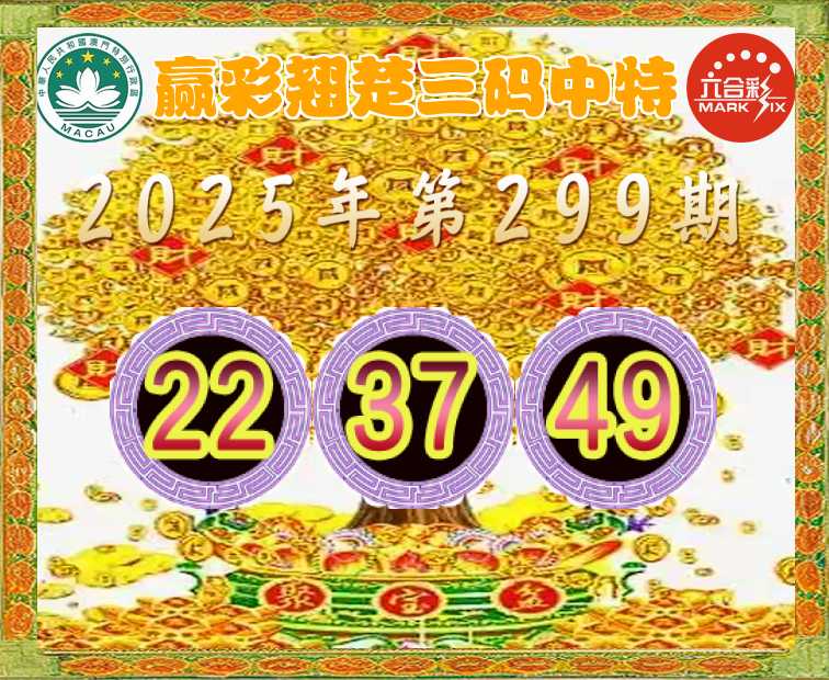 299期: 👈『赢彩翘楚』 👈三码中特👈【22.37.49】开:49准