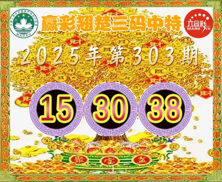 303期: 👈『赢彩翘楚』 👈三码中特👈【15.30.38】开:15准
