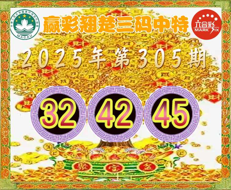 305期: 👈『赢彩翘楚』 👈三码中特👈【32.42.45】开:42准