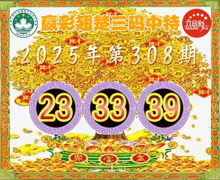 308期: 👈『赢彩翘楚』 👈三码中特👈【23.33.39】开:39准