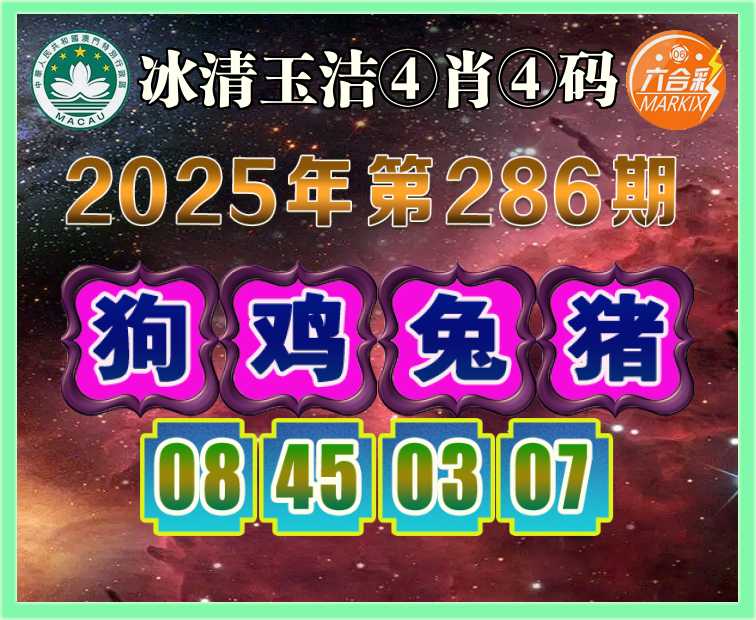 286期:【冰清玉洁】 🎪④肖④码🎪【狗鸡兔猪】【08.45.03.07】开:兔03准