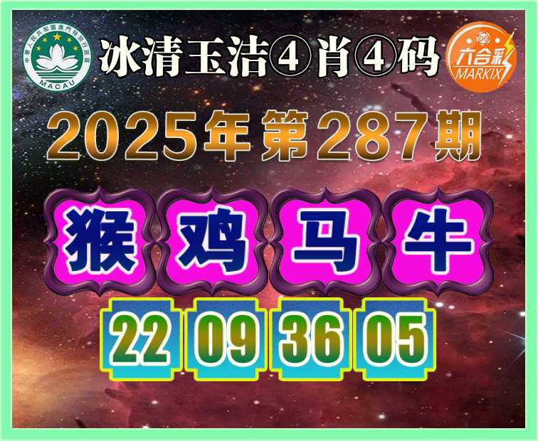 287期:【冰清玉洁】 🎪④肖④码🎪【猴鸡马牛】【22.09.36.05】开:猴34准