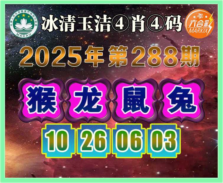 288期:【冰清玉洁】 🎪④肖④码🎪【猴龙鼠兔】【10.26.06.03】开:龙14准