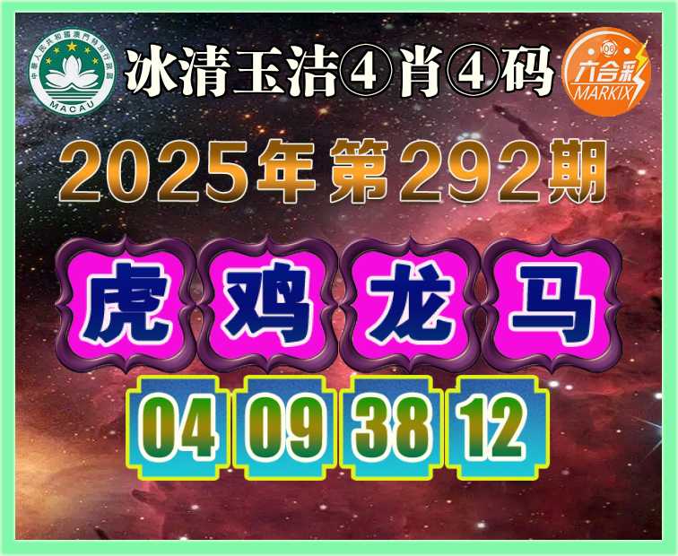 292期:【冰清玉洁】 🎪④肖④码🎪【虎鸡龙马】【04.09.38.12】开:龙02准