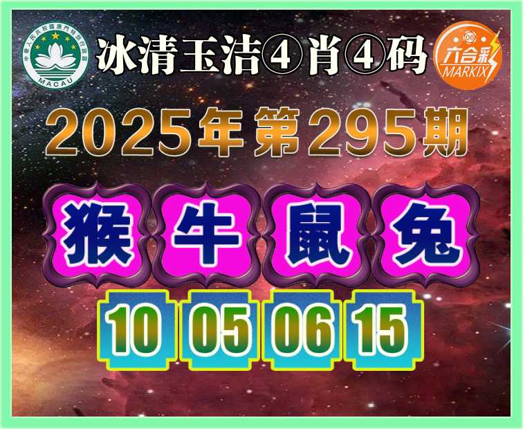 295期:【冰清玉洁】 🎪④肖④码🎪【猴牛鼠兔】【10.05.06.15】开:牛05准