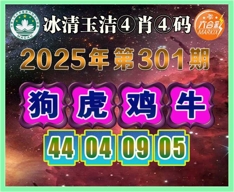301期:【冰清玉洁】 🎪④肖④码🎪【狗虎鸡牛】【44.04.09.05】开:牛05准