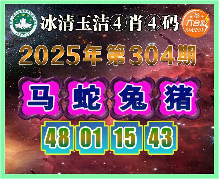 304期:【冰清玉洁】 🎪④肖④码🎪【马蛇兔猪】【48.01.15.43】开:马48准