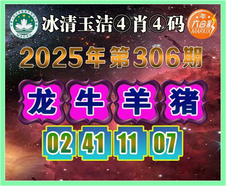 306期:【冰清玉洁】 🎪④肖④码🎪【龙牛羊猪】【02.41.11.07】开:牛17准